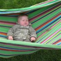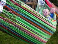 Fabric hammock in Mexican greenish style. 100% woven cotton fabric.